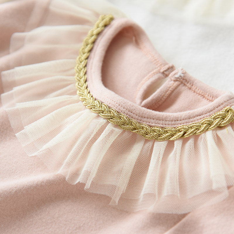 女童纯棉长袖蕾丝荷叶领纯棉