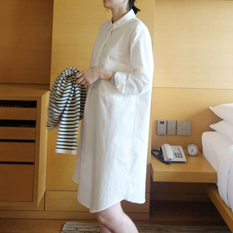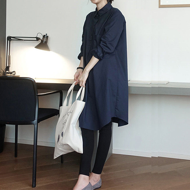 韩国东大门2025年秋季纯棉衬衫女长袖韩版宽松套头中长款衬衣裙女