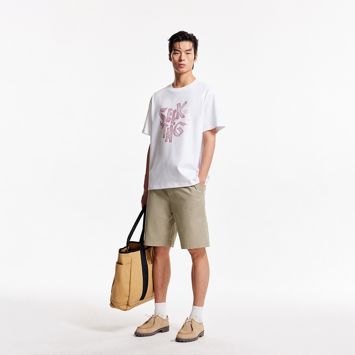 tj区绫致杰克琼斯男秋冬短裤时尚字母刺绣后兜贴布宽松休闲裤子