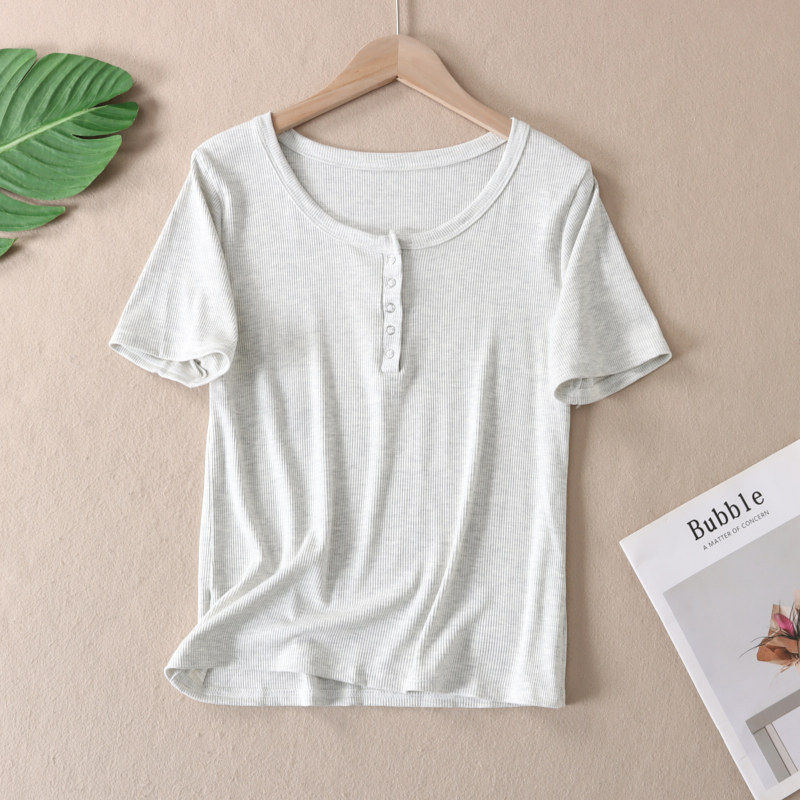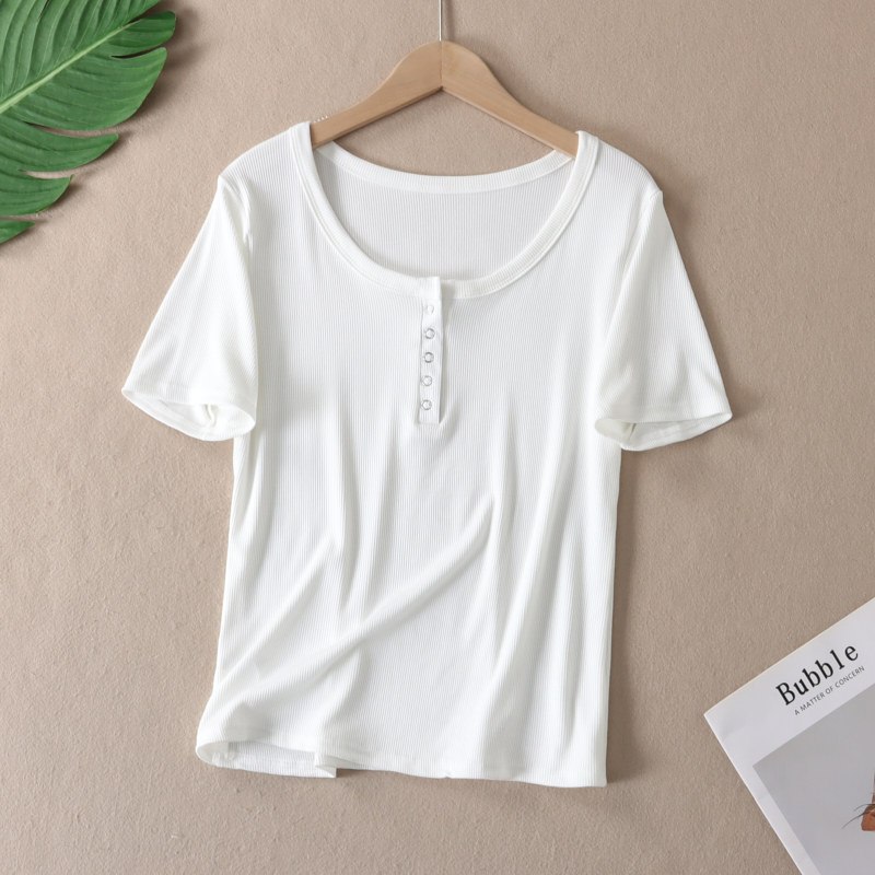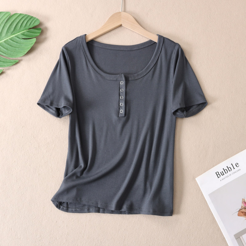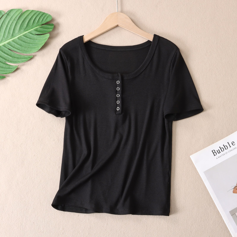 韩版甜辣U领锁骨短袖T恤女夏正肩修身显瘦百搭纯色半开领上衣 T15