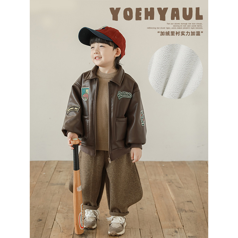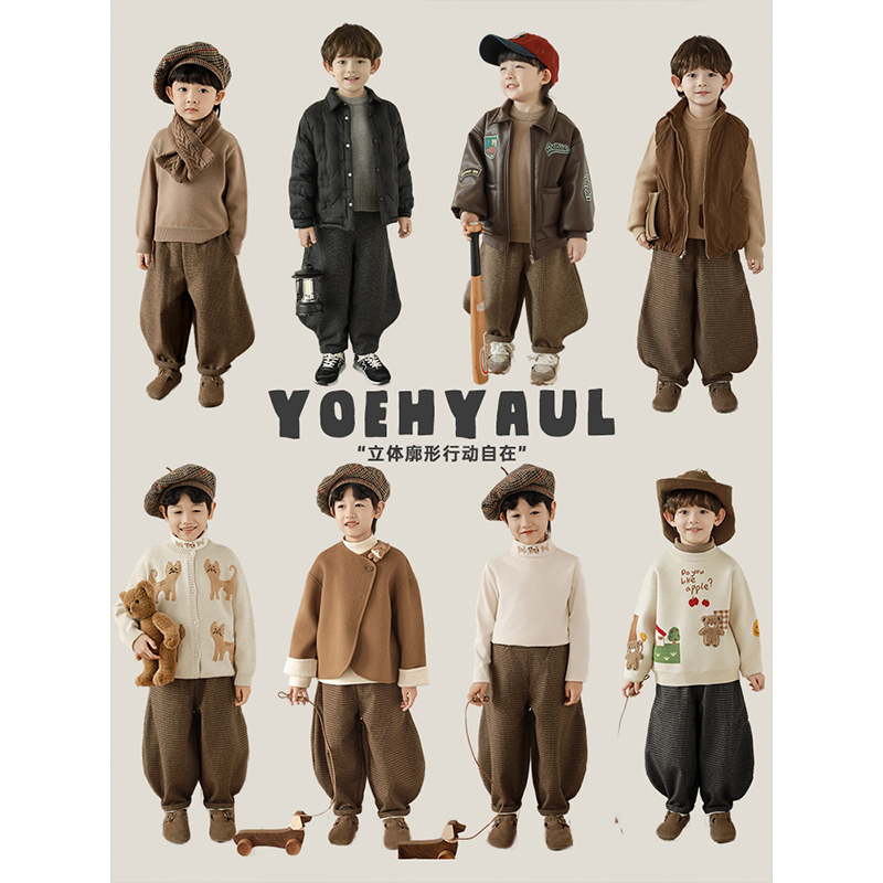 幼悠男童2025新款复古英伦风千鸟格纹休闲裤秋冬款加绒保暖裤子潮