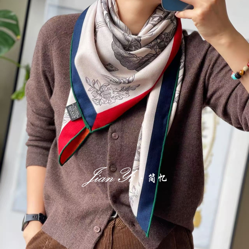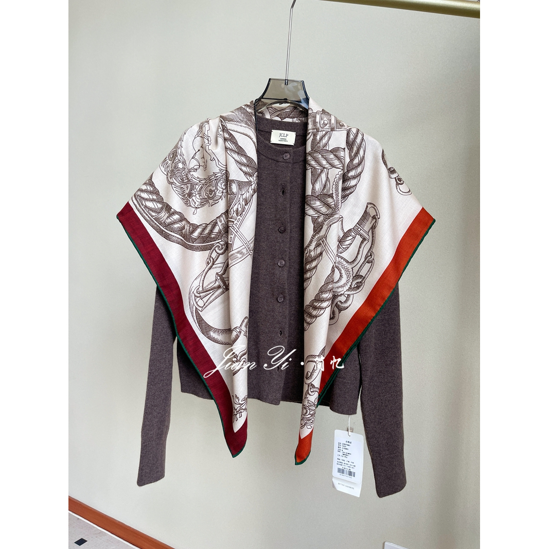 【缰绳】经典通勤精纺澳洲羊毛100cm方巾双面同色披肩围巾女