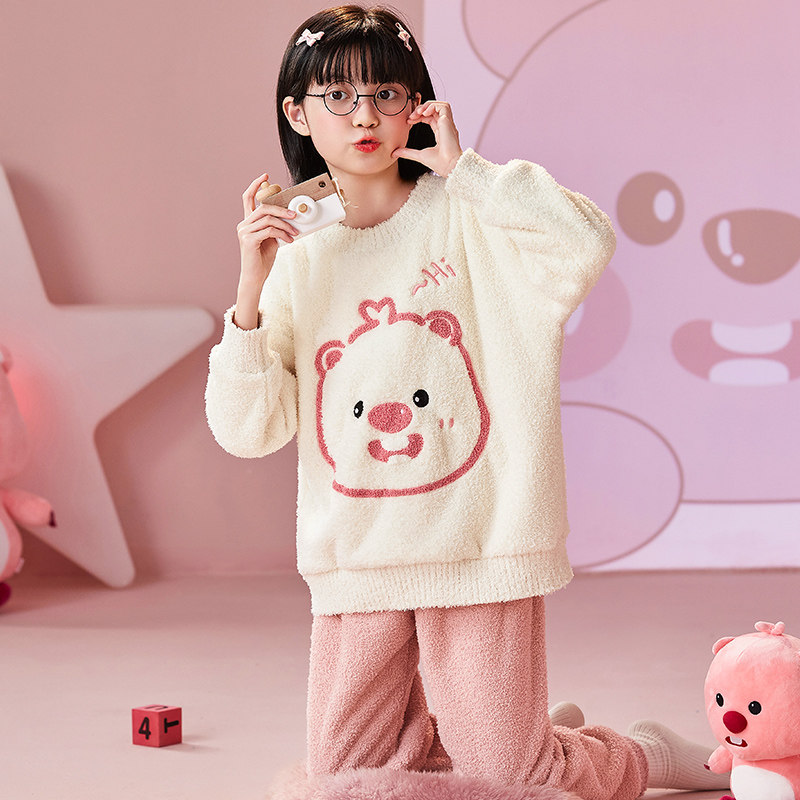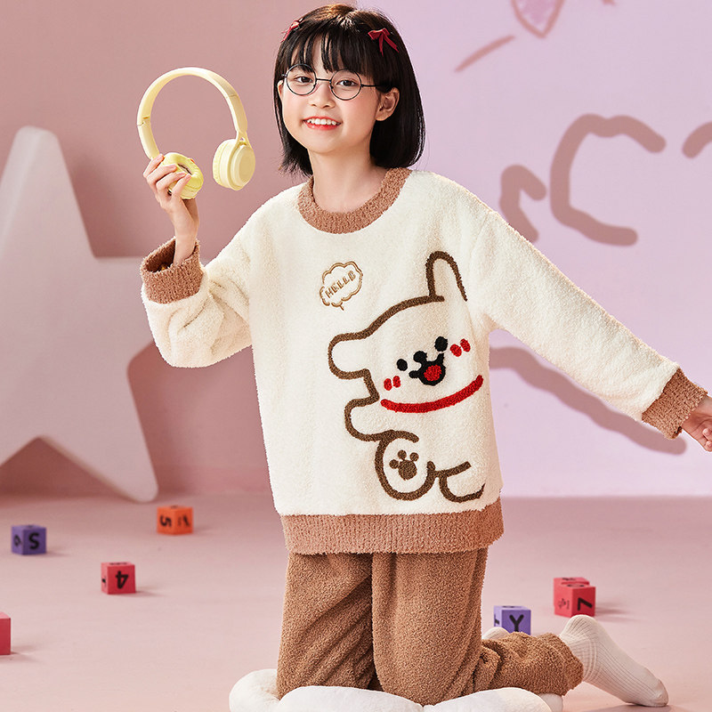 半边绒睡衣儿童冬季毛茸茸蛋仔派对家居服加绒厚女童冬装保暖套装