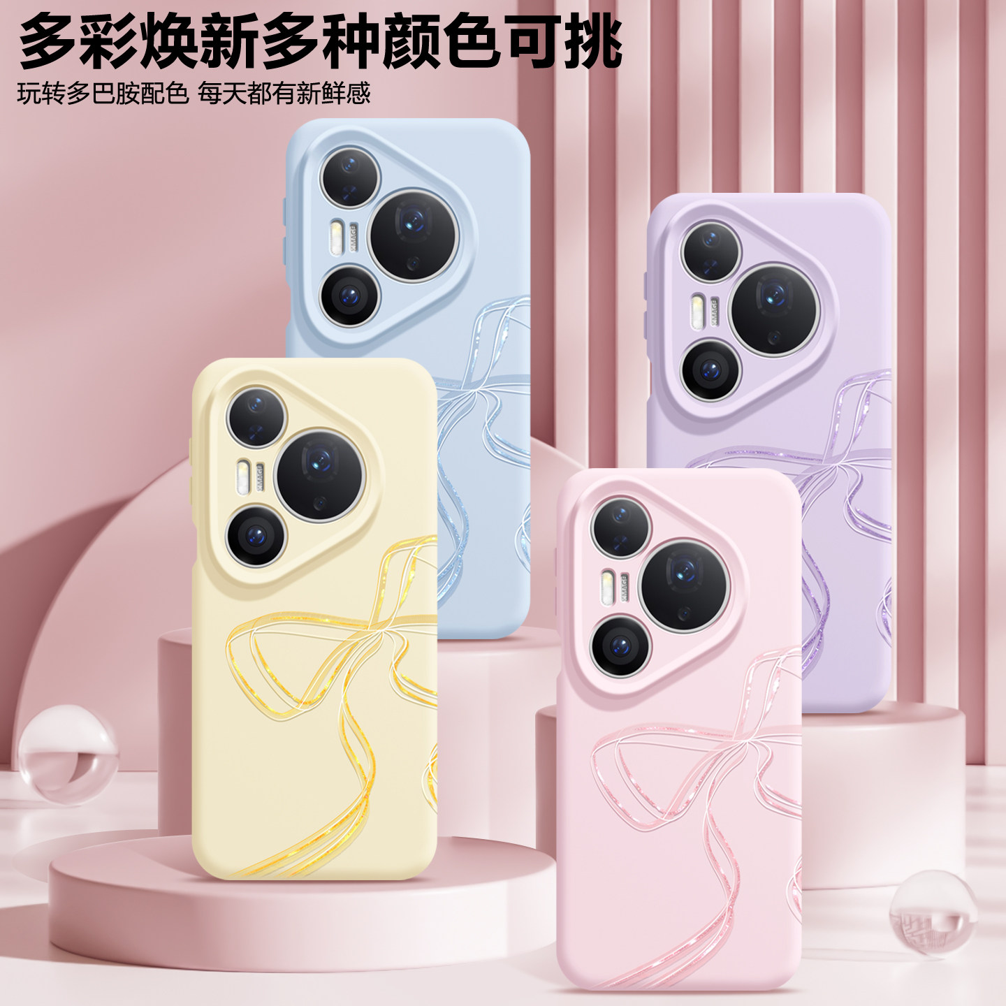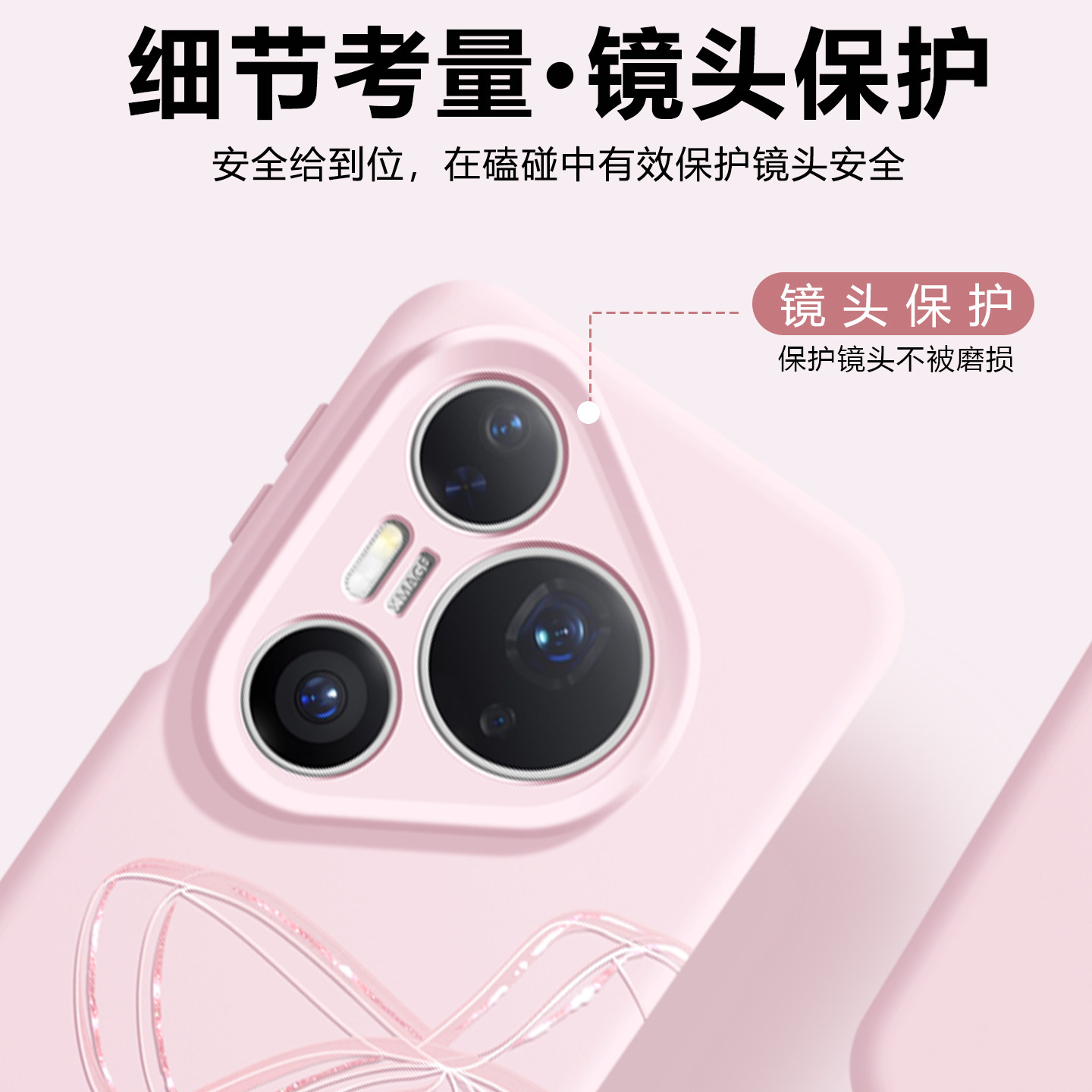 火龙果色蝴蝶结适用华为Pura80手机壳新款简约p70ultra带挂绳可爱女P80Pro液态硅胶保护套p60pro防摔亲肤软糯