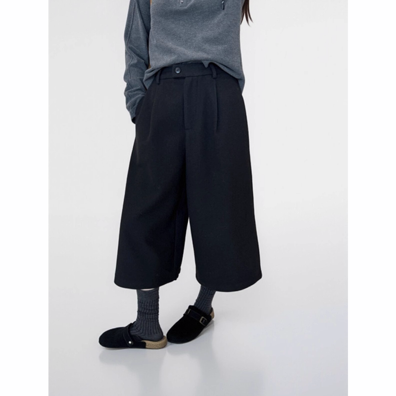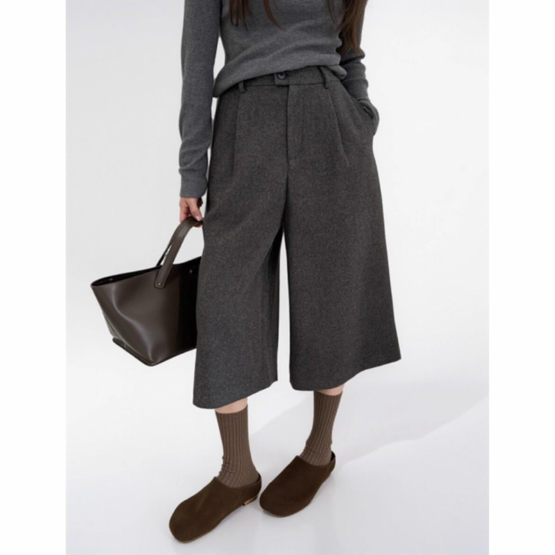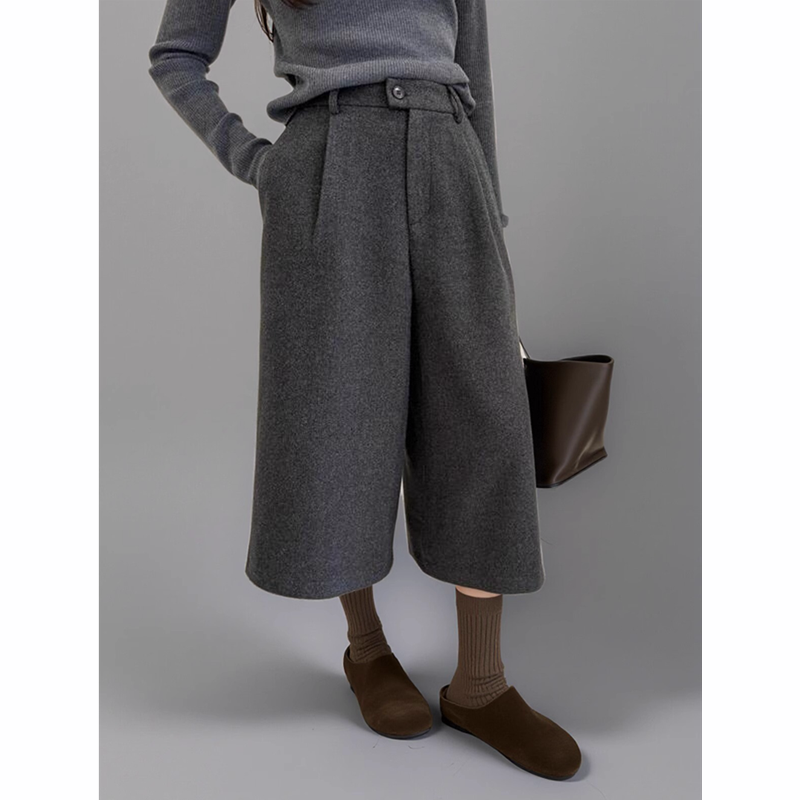 2025冬季新款羊毛呢八分西装裤款女纯色高级显瘦加厚小个子阔腿裤