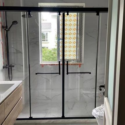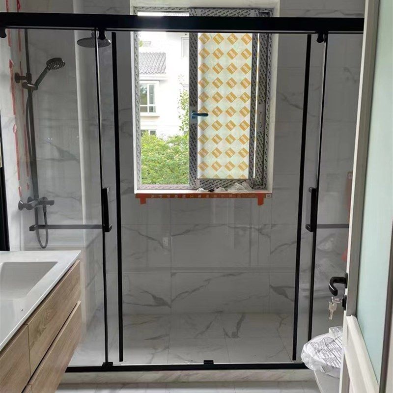 雅黑两固两移一字移门淋浴房隔断推拉玻璃门定制浴室简易干湿分离