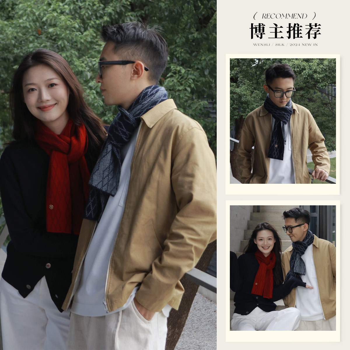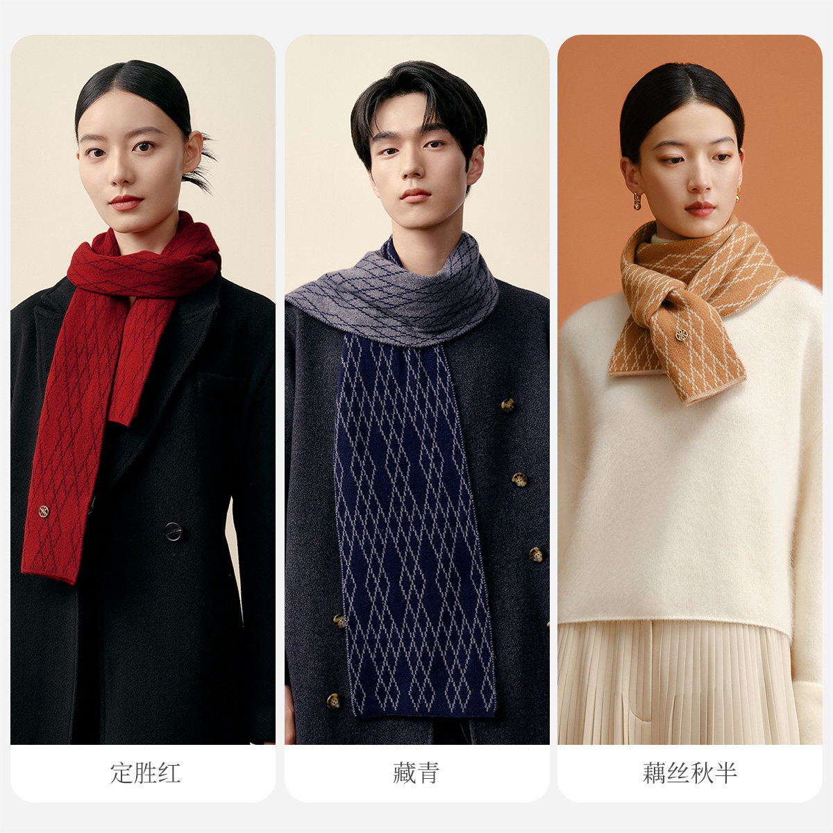 万事利秋冬季100%绵羊毛小围巾女加厚保暖男女情侣款围脖交错时空