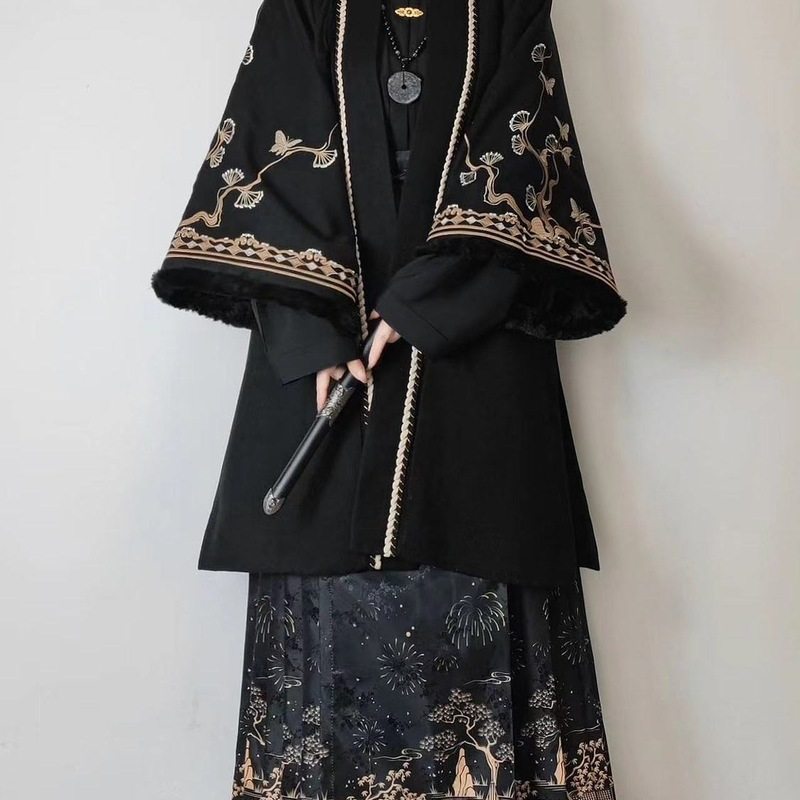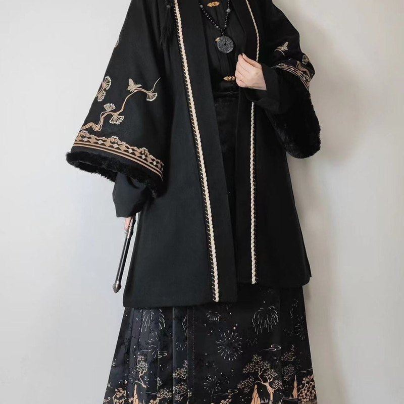 大码汉服女胖mm明制加绒加厚长袄马面裙日常显瘦古风冬季过年套装