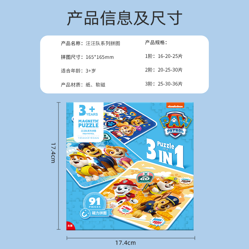 汪汪队磁力拼图3到6岁进阶宝宝平图儿童早教磁性贴益智力男孩玩具