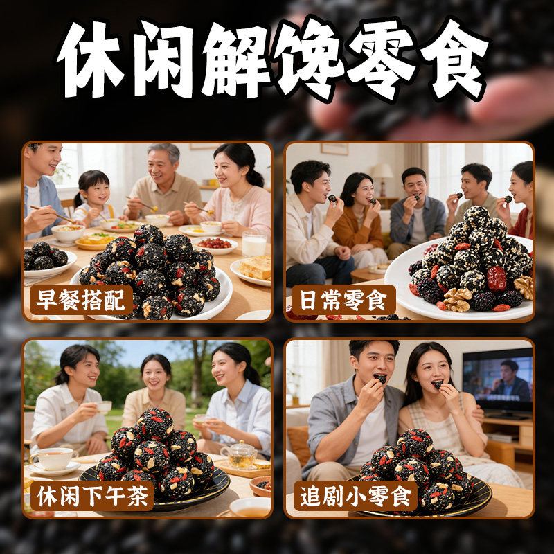 黑芝麻丸正五珍核桃桑葚品枸杞糕点零食休闲软糕官方旗舰店