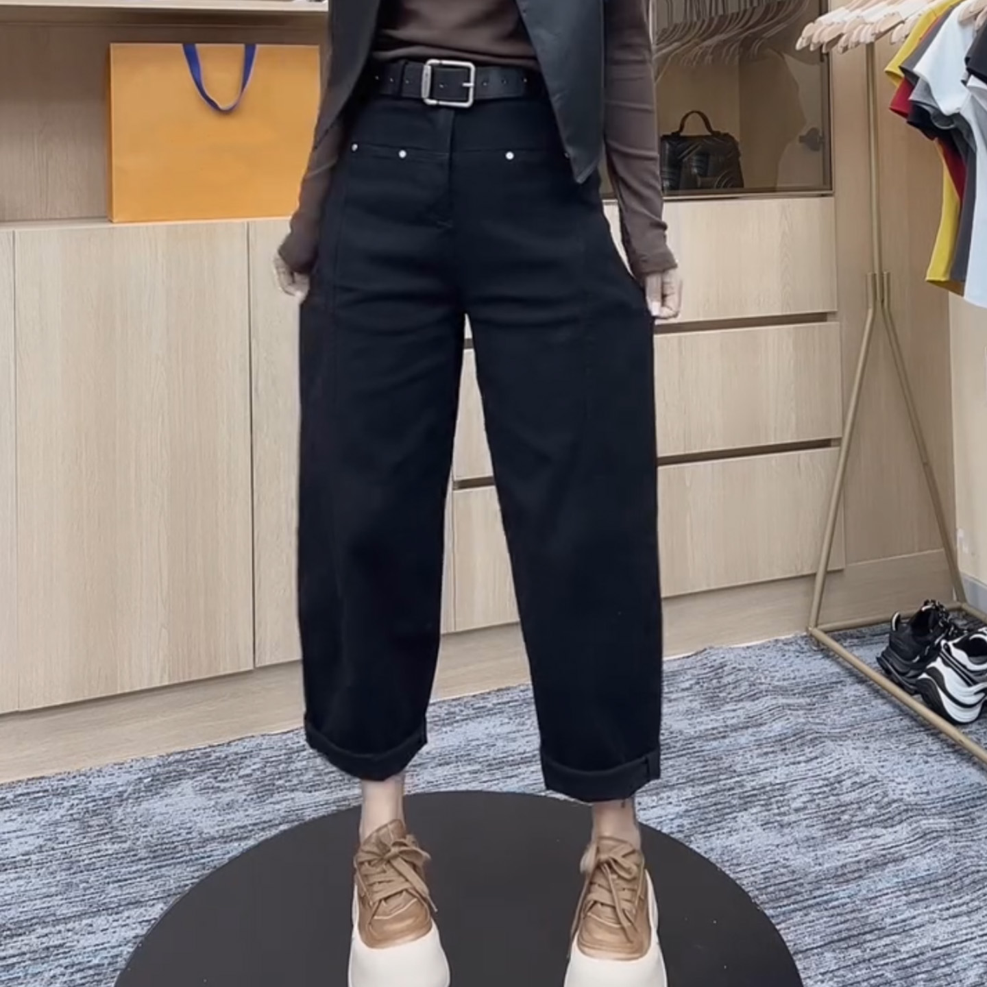 大码女装2025秋季新款高腰弹力九分牛仔裤胖mm宽松显瘦百搭直筒裤