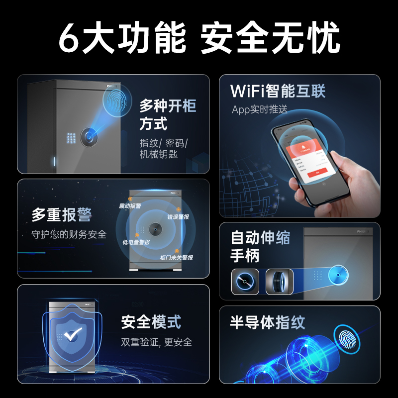 【荣获德国红点奖】PHILIPS飞利浦602保险柜家用智能wifi小型办公室保险箱简约高端家庭用全钢大型入柜防盗撬
