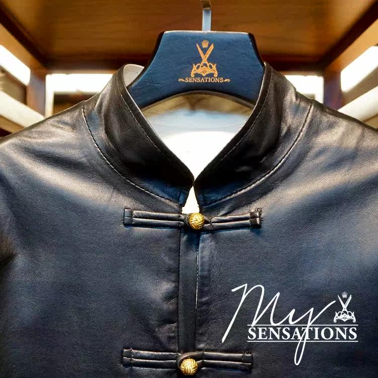 黑色中式皮外套马褂盘扣设计新中式夹克