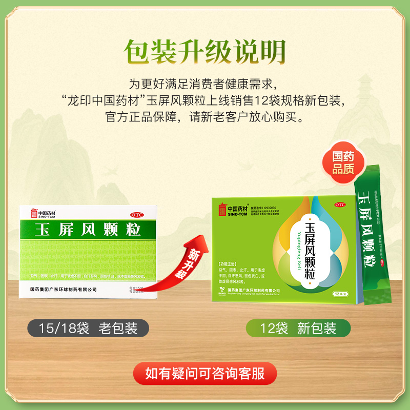 【中国药材】玉屏风颗粒5g*12袋/盒5g*18袋