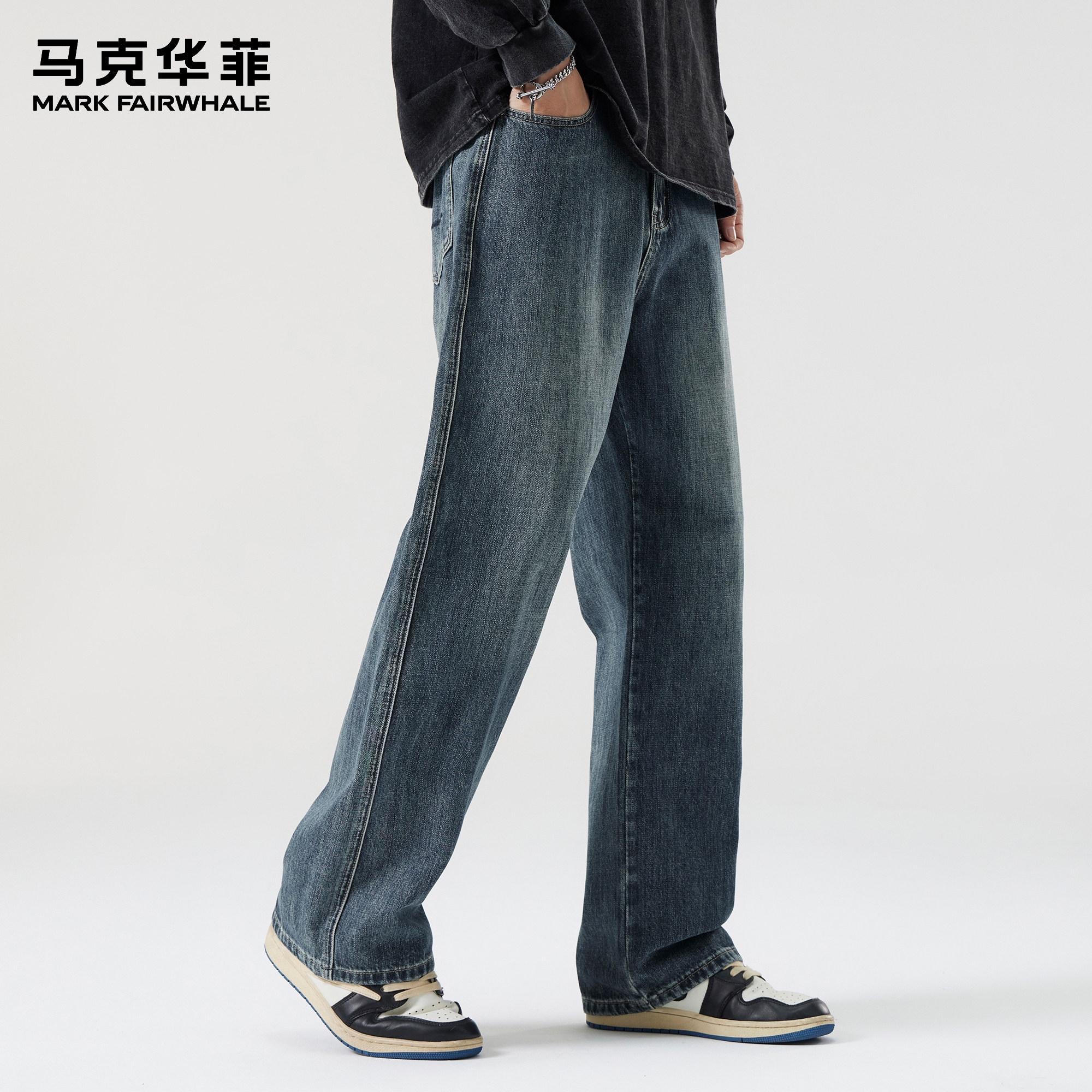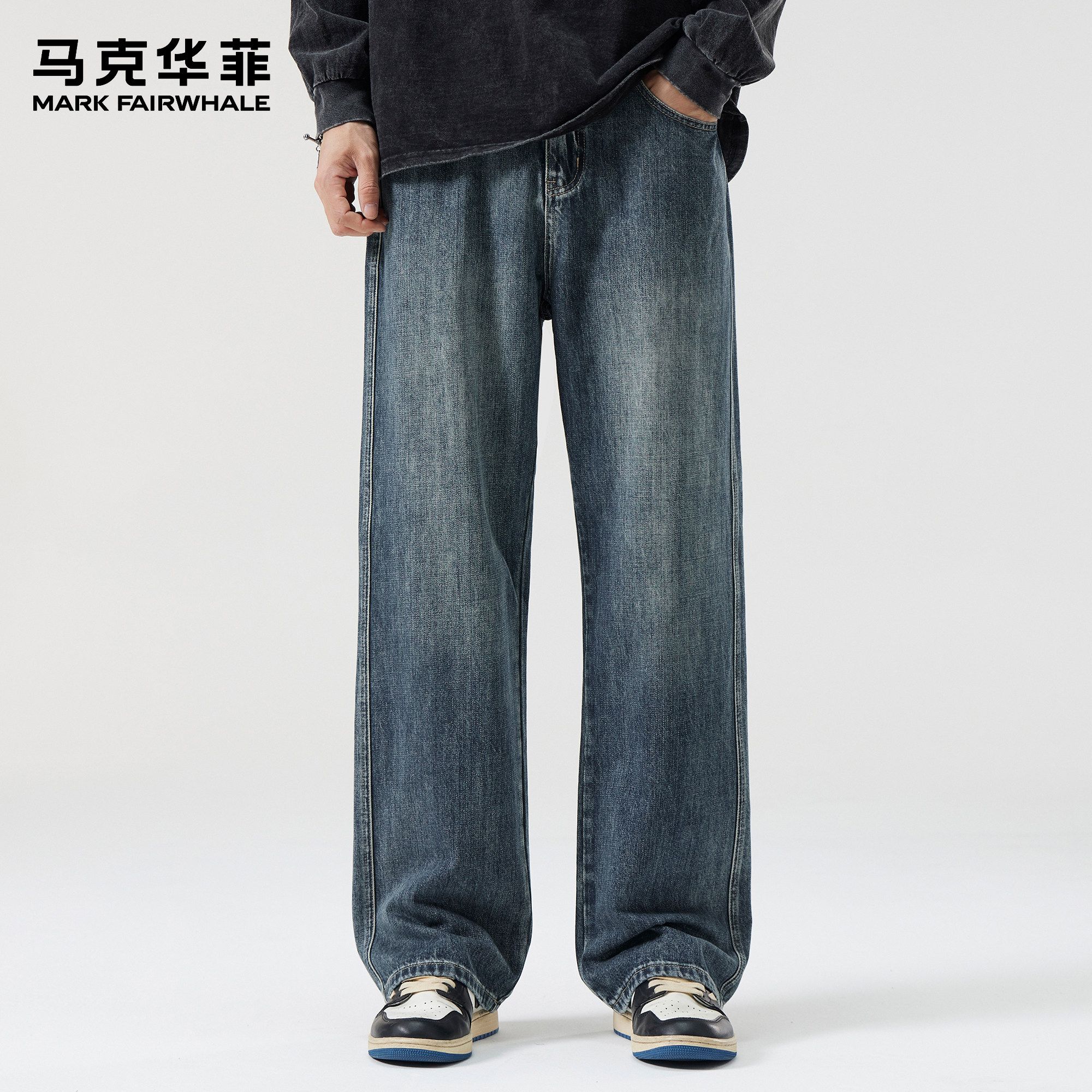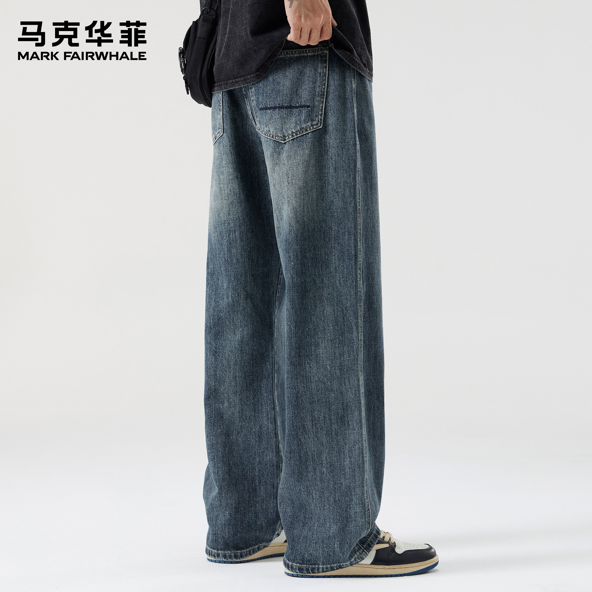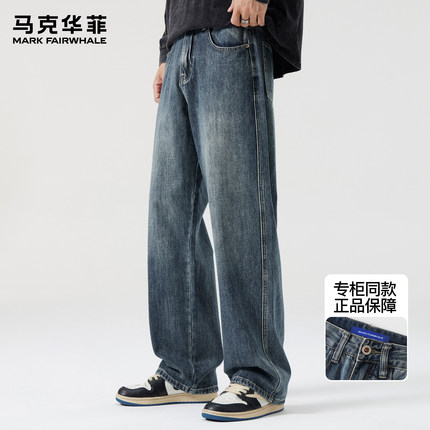 马克华菲牛仔裤男士新款春季美式复古高街水洗痞帅宽松直筒阔腿裤