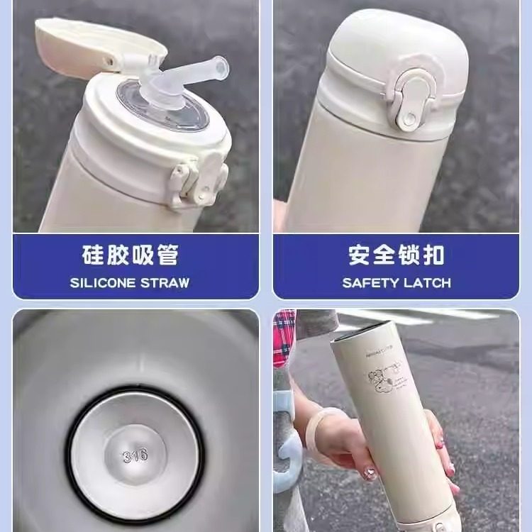 史努比吸管保温杯2024新款水杯儿童小学生上学专用吸管女生高颜值