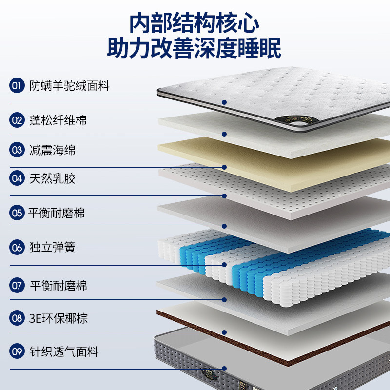 希尔顿酒店专用五星级软硬双用床垫天然乳胶3E环保椰棕独立弹簧袋
