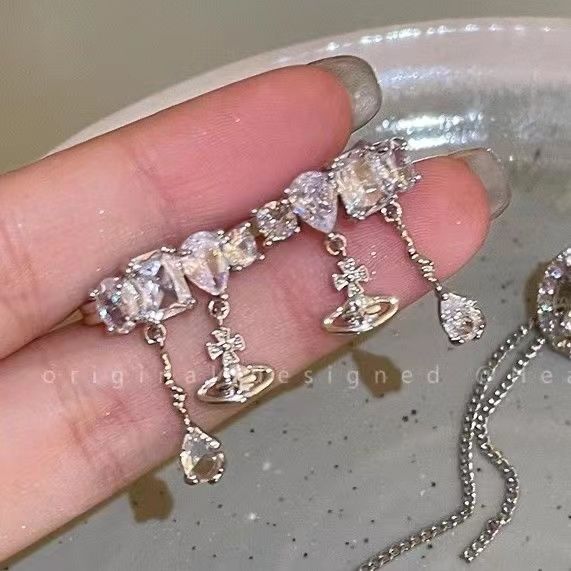 水滴流苏无耳洞耳夹女轻奢高级感耳环耳挂精灵耳秋冬耳骨夹耳饰女