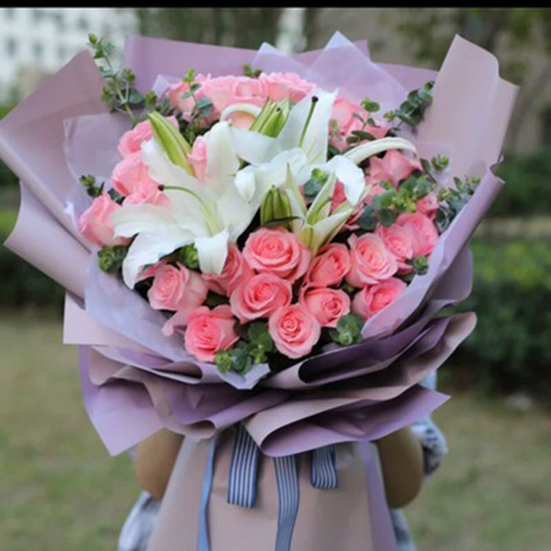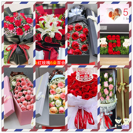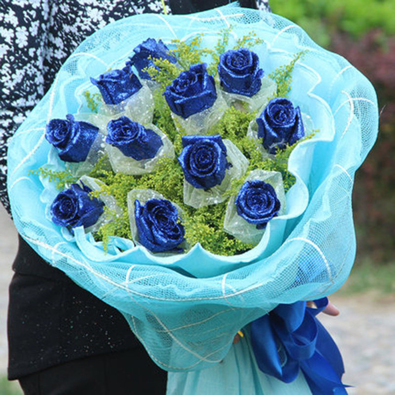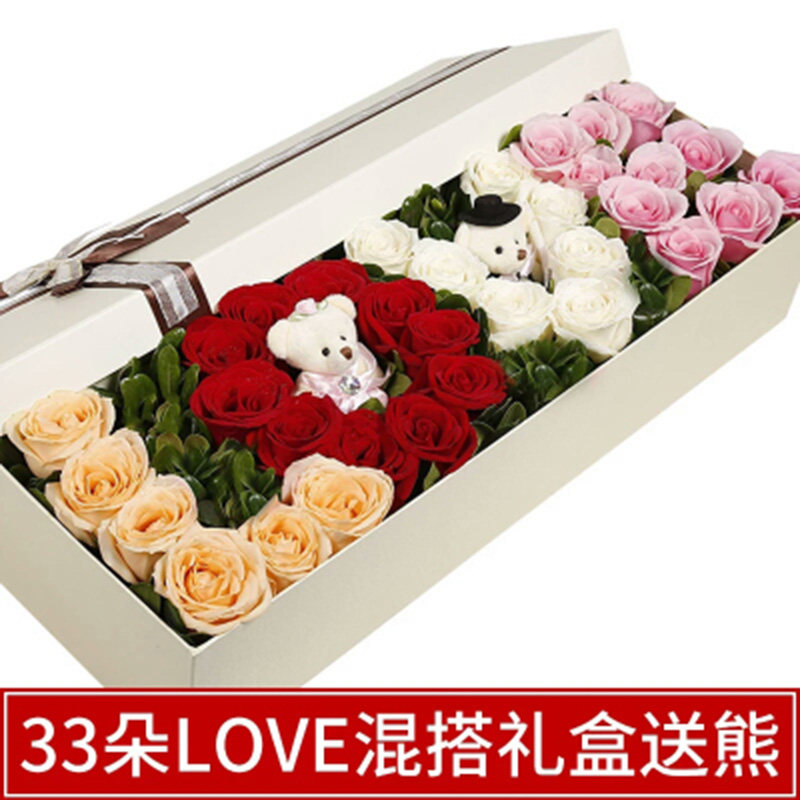 蓝粉香槟红玫瑰花束礼盒鲜花速递同城运城市盐湖区河津花店配送