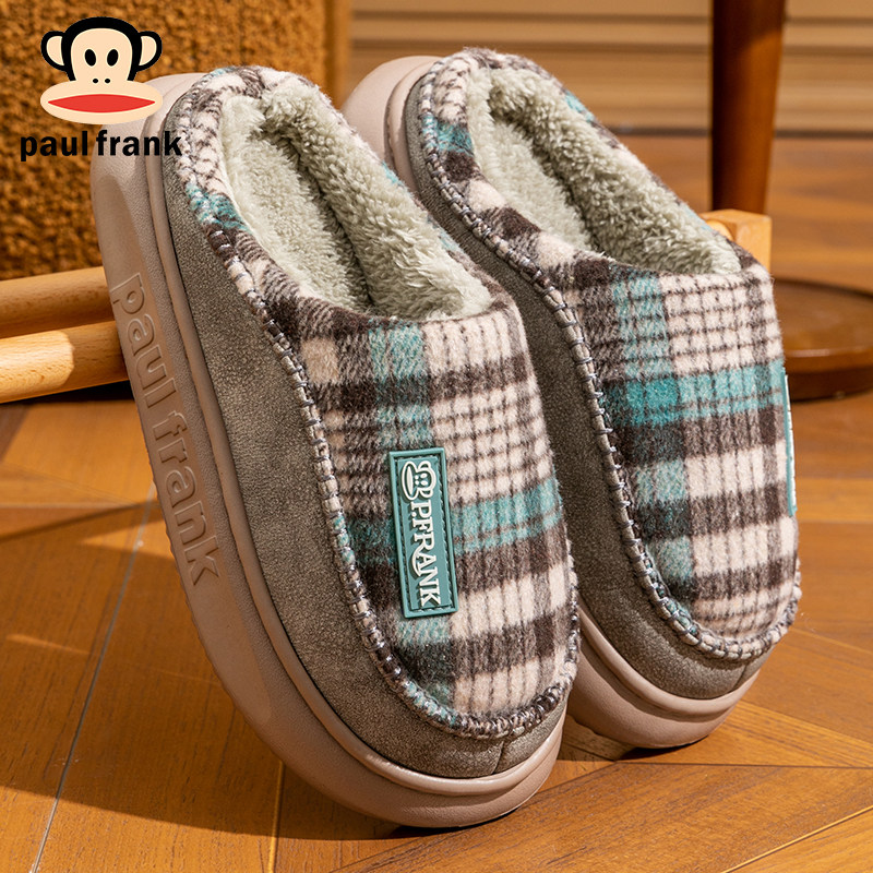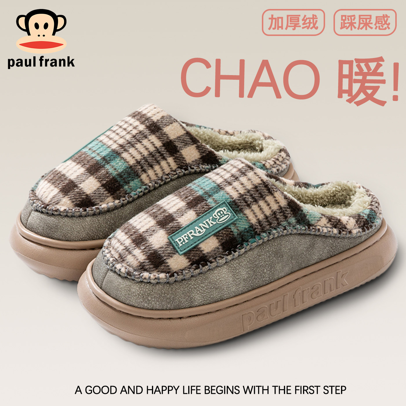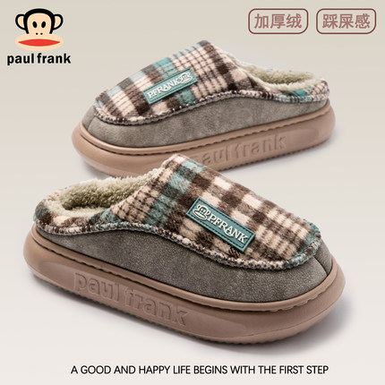 大嘴猴新款棉拖鞋半包跟秋冬男女居家格子纹时尚外穿保暖情侣棉鞋