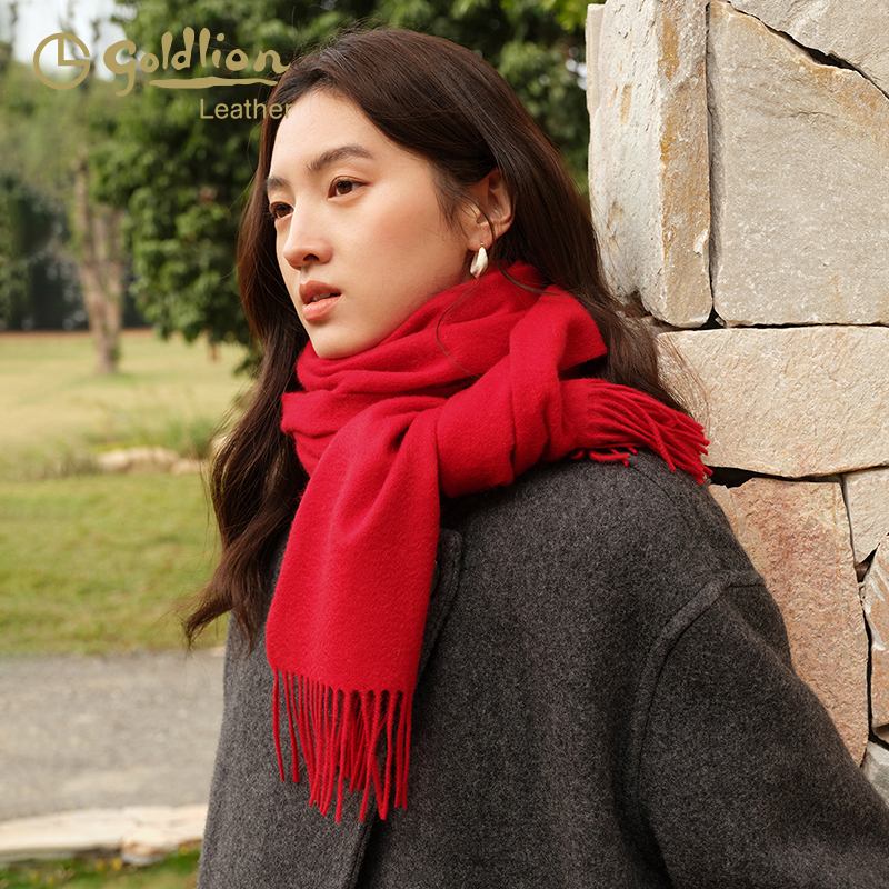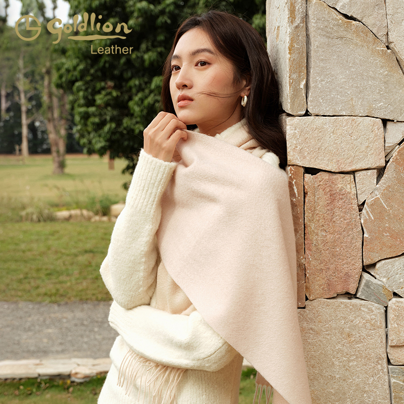 金利来简约时尚100%山羊绒围巾女冬百搭韩版护颈纯色围脖防寒披肩