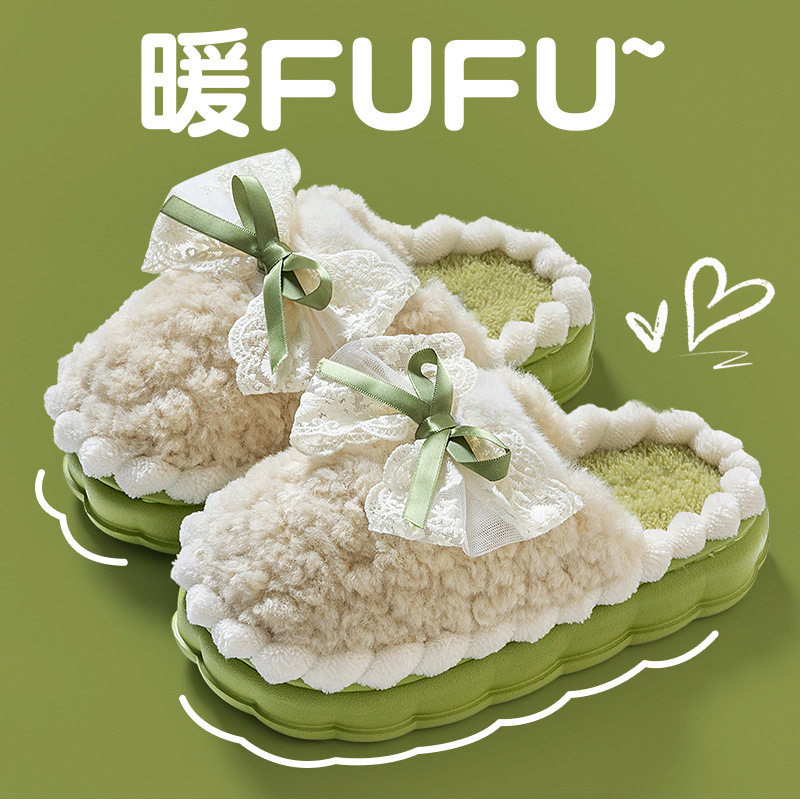 2025新款冬季棉拖鞋毛绒女士室内家居加厚底防滑蝴蝶结保暖毛毛鞋