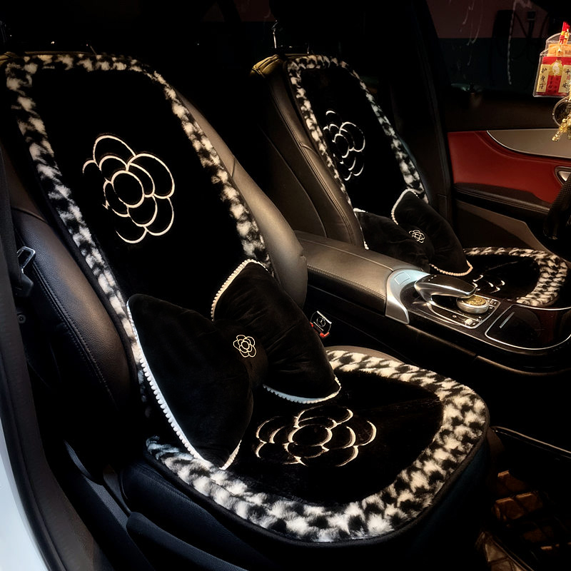 汽车坐垫秋冬季毛绒山茶花座椅加绒加热四季通用女士保暖车内座垫