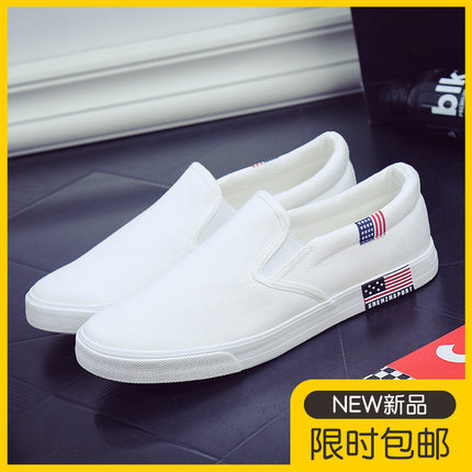 新款四季大码男士套脚女情侣鞋一脚蹬韩版工作休闲学生小白潮帆布