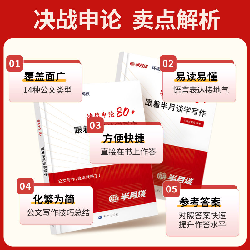半月谈公务员考试2025决战申论80+跟着半月谈学写作申论国考省考考公资料2026历年真题试卷公考考试用书背诵素材范文宝典环球网校