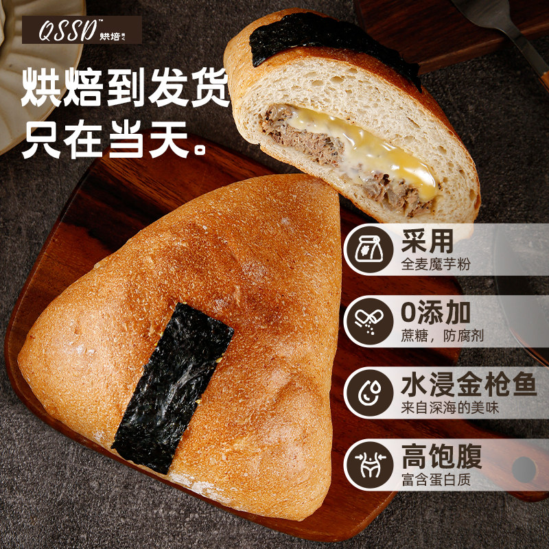 QSSD全麦手作欧包芝士黑椒金枪鱼无蔗糖早餐面包即食代餐点心