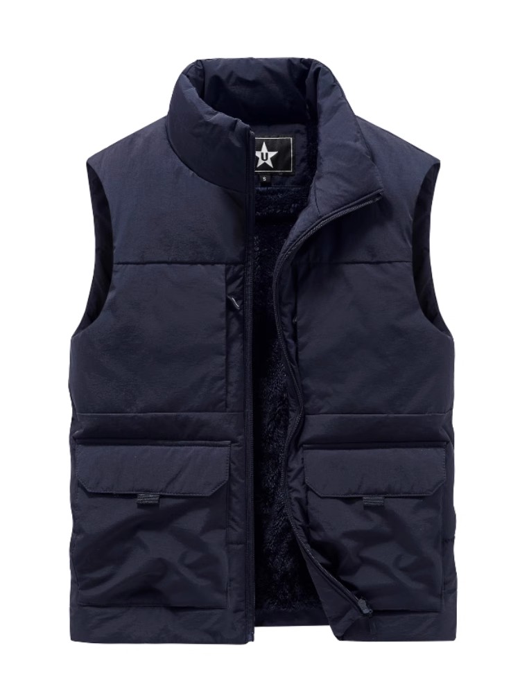 棉马甲男冬季加绒保暖背心多口袋工装羊羔绒马夹加厚大码坎肩外套