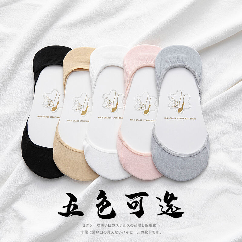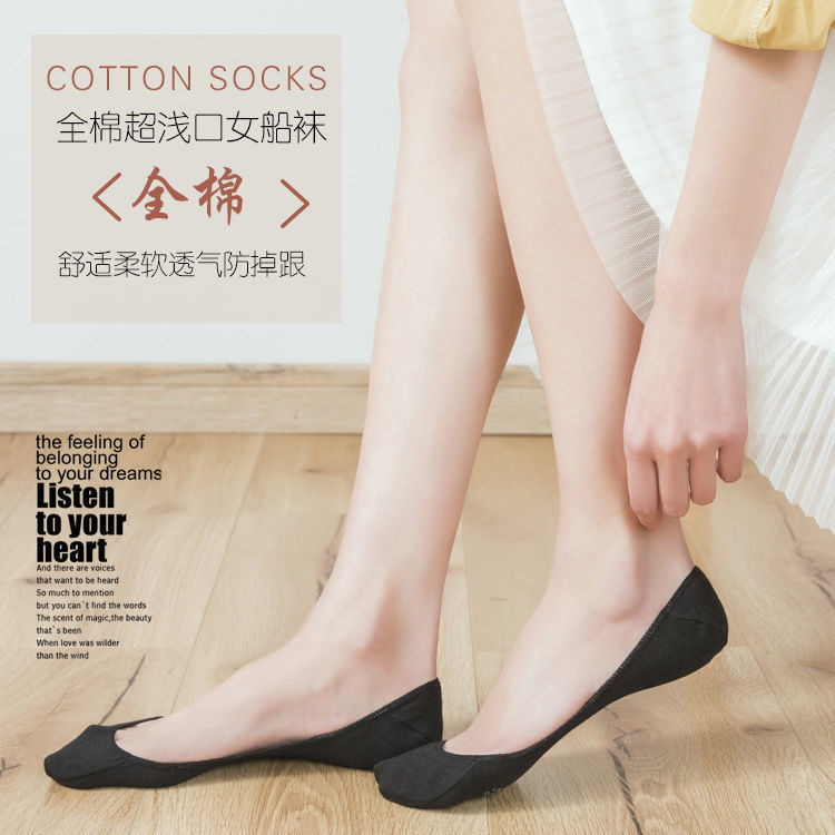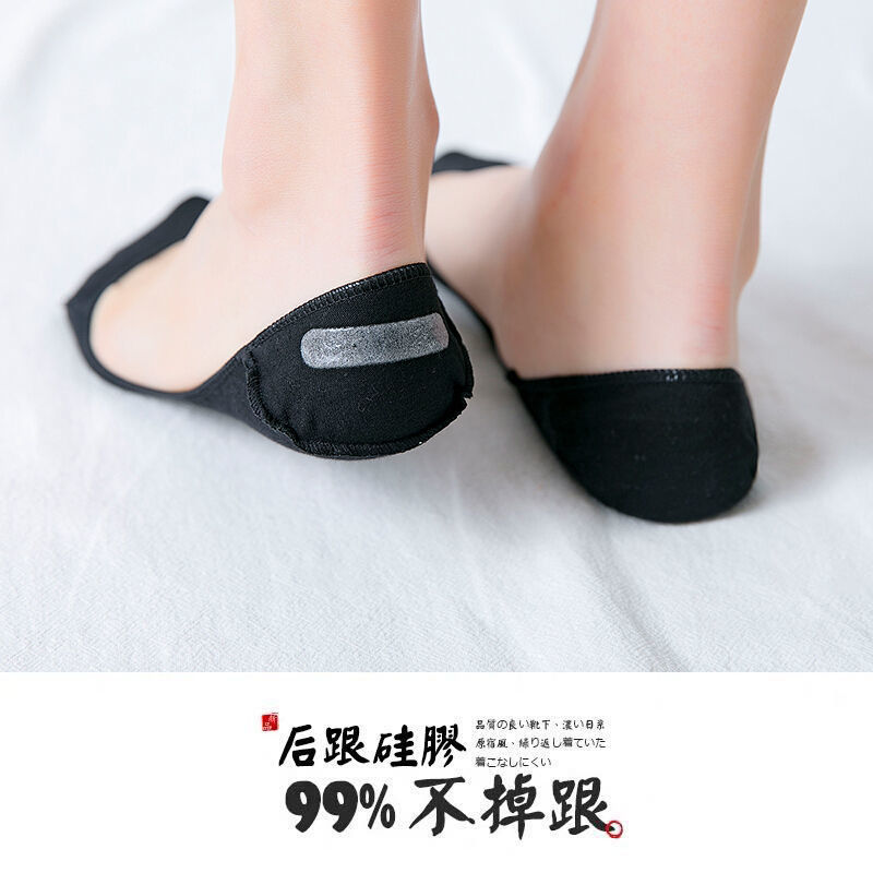 纯棉袜子女士春夏薄款黑色隐形船袜韩版浅口低帮硅胶防滑不掉根