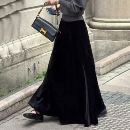 高端定制黑色丝绒大码半身裙2025秋季新款轻奢气质高级感A字裙子