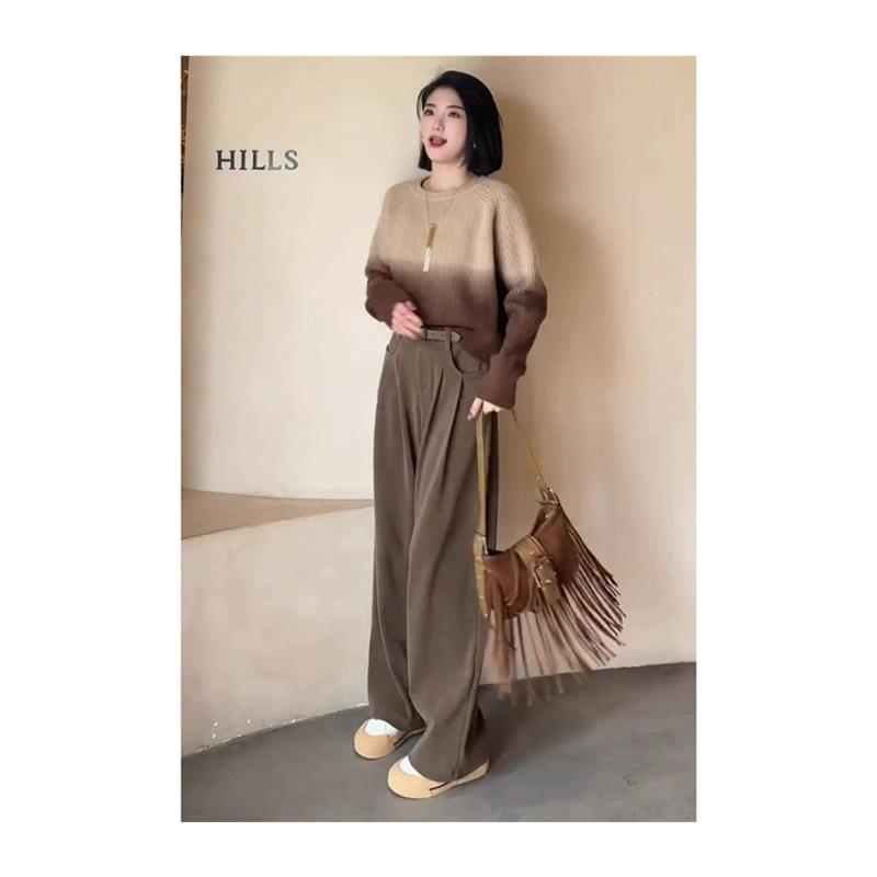 大码女装秋季套装女2024新款遮肉显瘦渐变色毛衣阔腿休闲裤两件套
