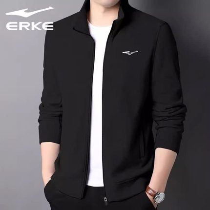 鸿星尔克外套男装春秋男士立领开衫卫衣薄款夹克旗舰店运动服上衣