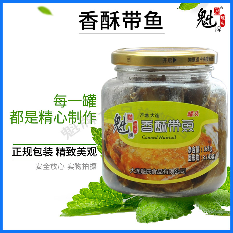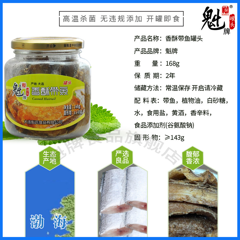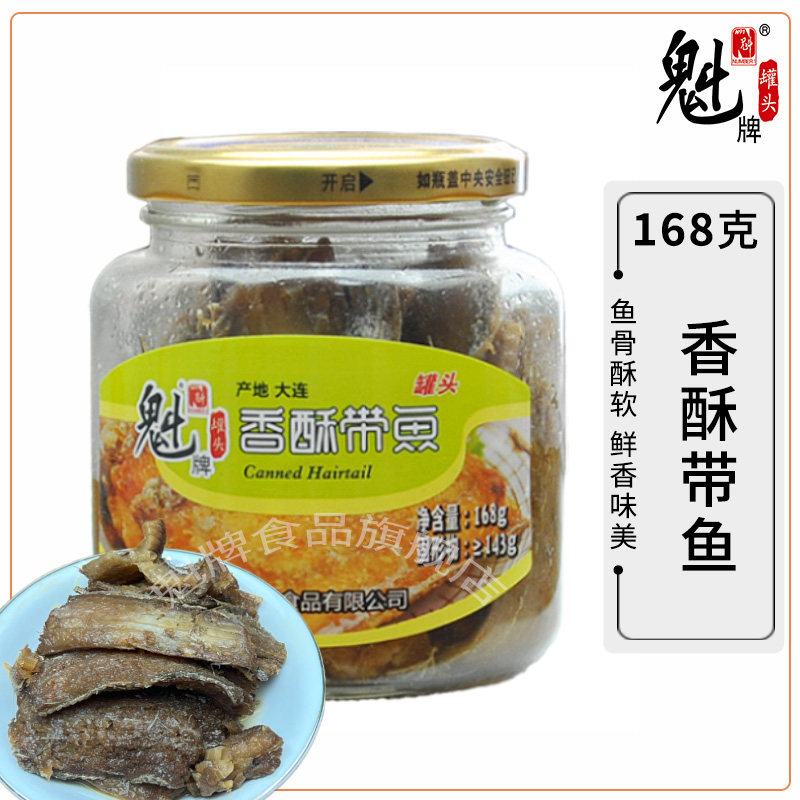 魁牌香酥带鱼罐头168g*2即食炸刀鱼玻璃瓶即食下饭刀鱼海鲜食品