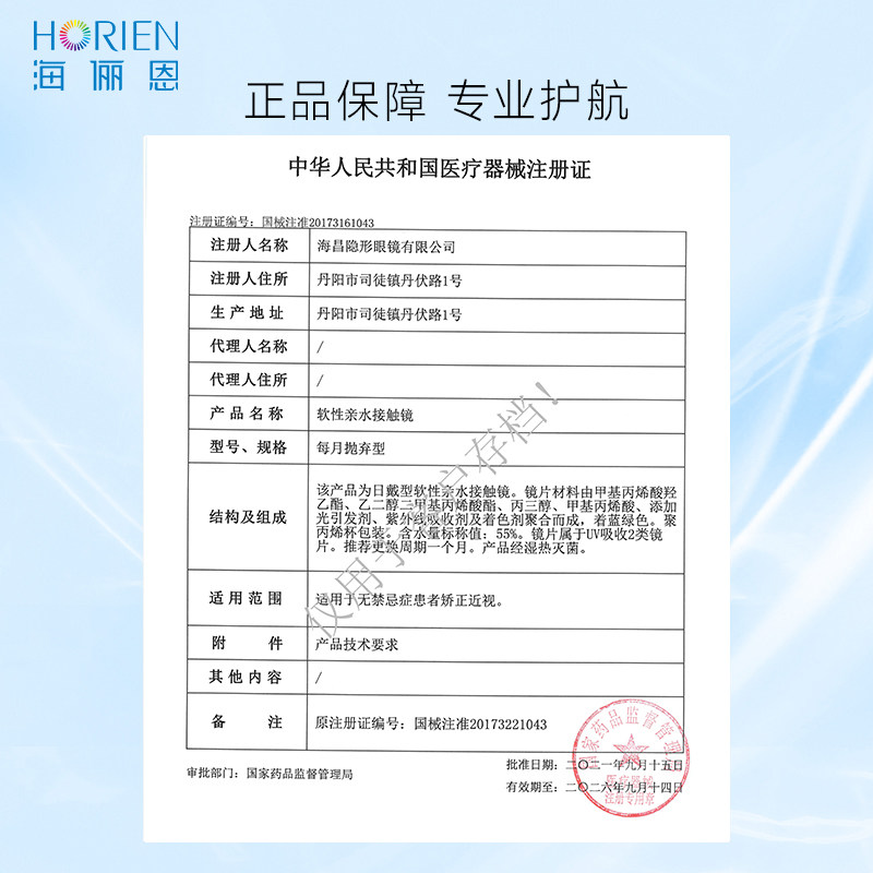 海俪恩海魅月抛2片近视隐形眼镜透明片学生非季抛官方旗舰店正品