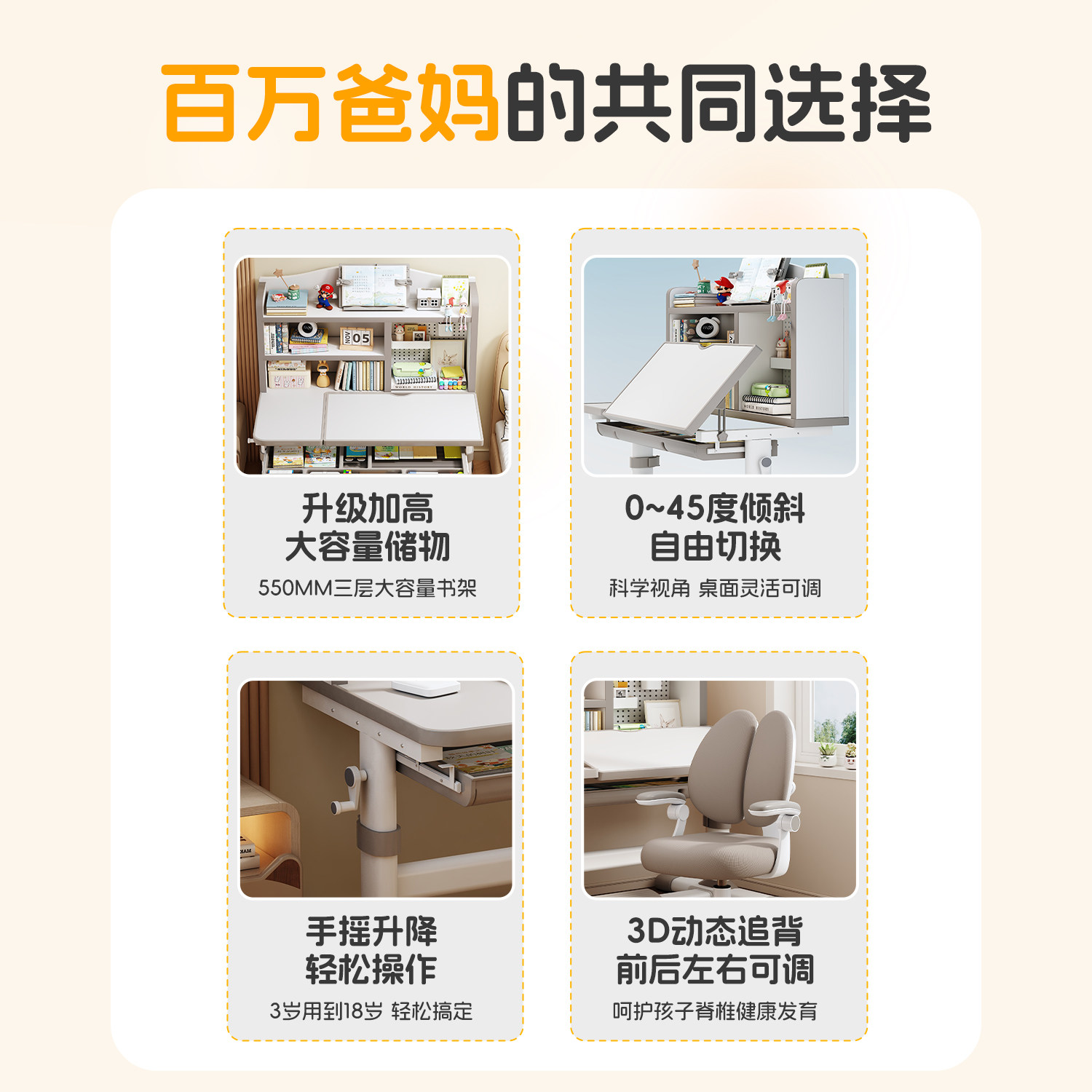 儿童学习书桌2025新款小学生家用写作业专用可升降调节桌椅子套装