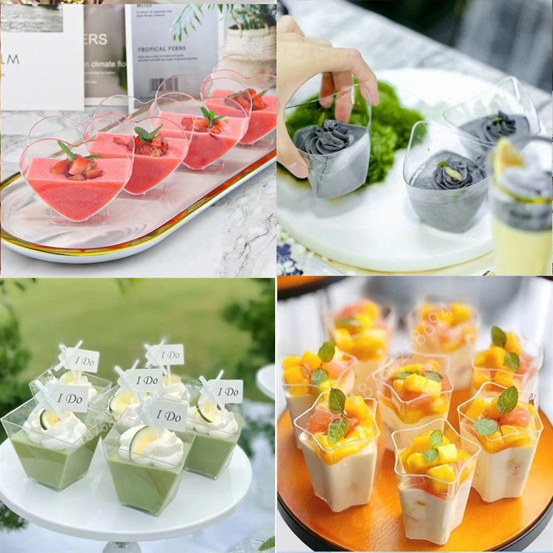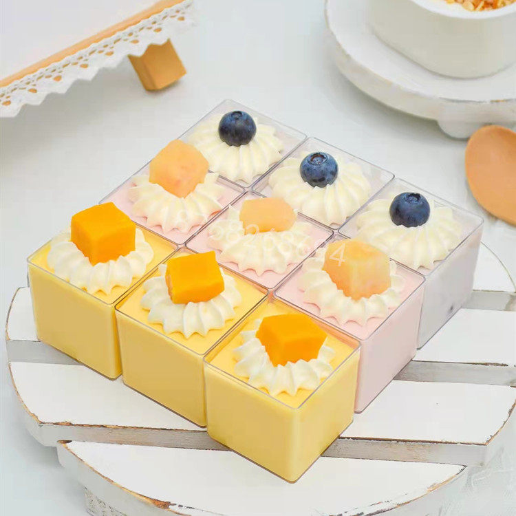甜品台布丁杯果冻慕斯杯甜品台一次性塑料透明杯子方形迷你带盖创