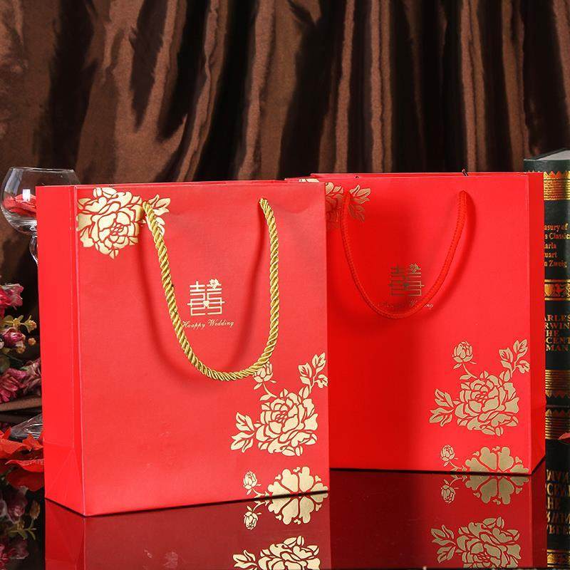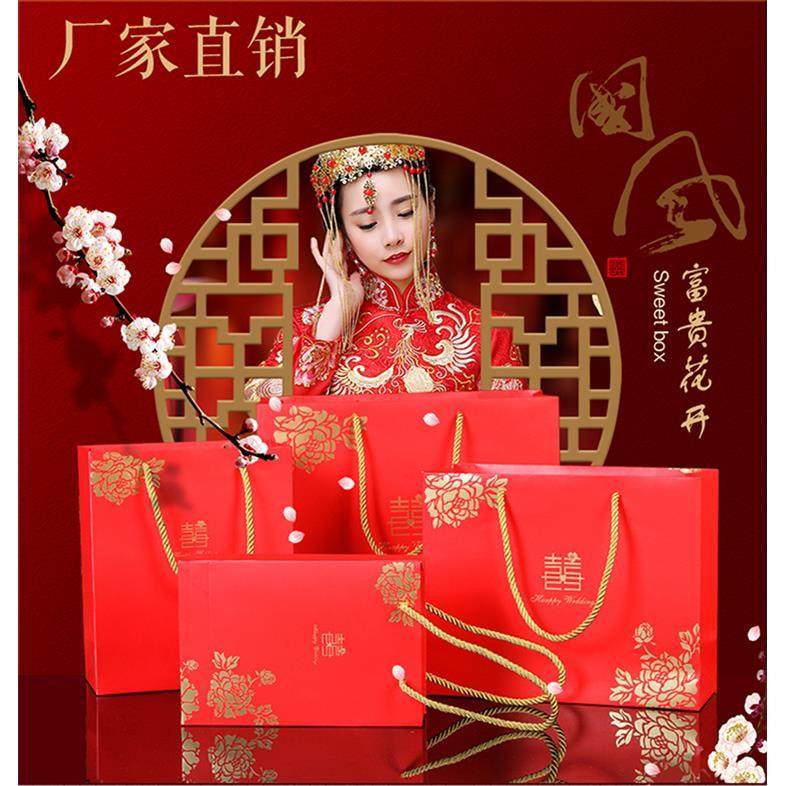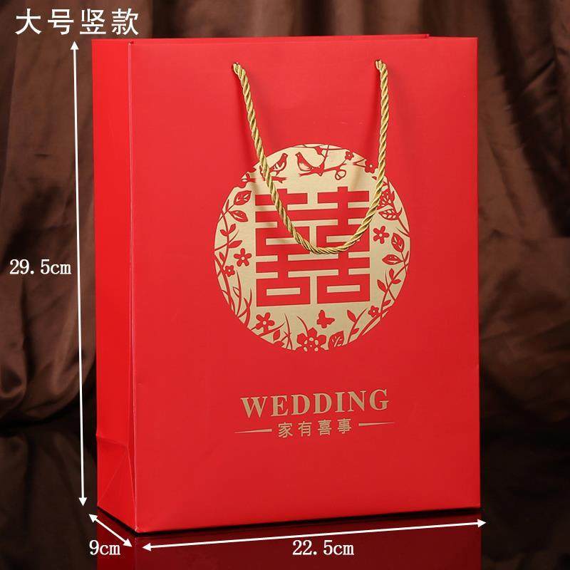 红色手提袋结婚纸袋大号回礼礼品袋婚庆用品大容量喜糖盒手拎袋子