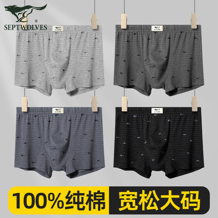 七匹狼男士内裤男款平角爸爸款宽松纯棉加大码中老年人四角短裤头