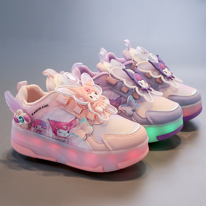 儿童暴走鞋新款女童库洛米隐形溜冰鞋夏季网面透气学生运动轮滑鞋