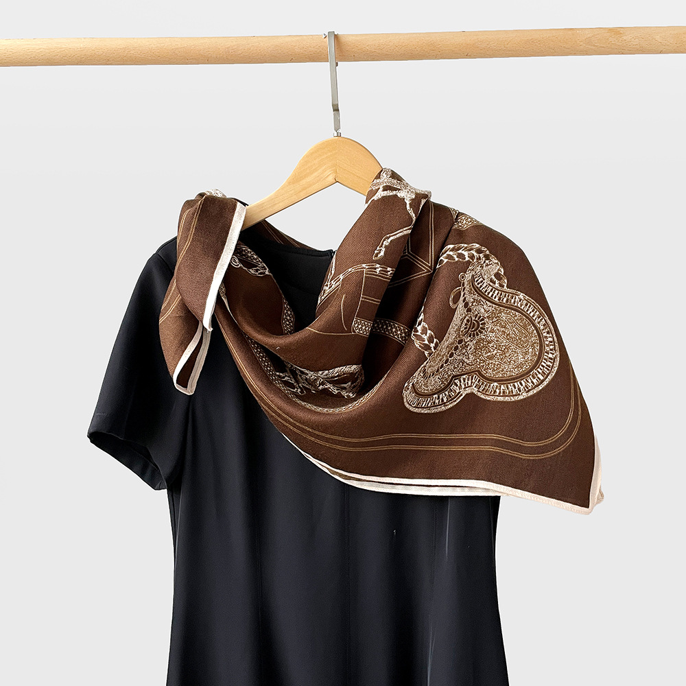 新款90大方巾丝巾女斑马印花围巾气质搭配领巾围巾时尚小披肩