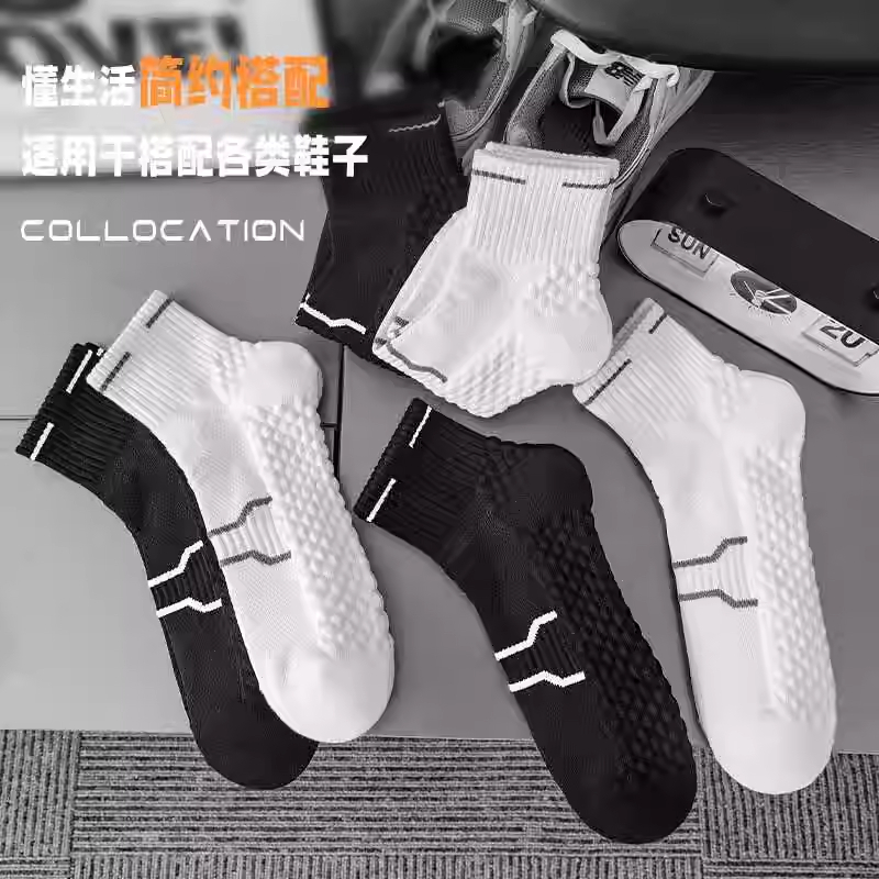 运动袜子男款秋冬专业跑步马拉松纯棉中筒袜男士加厚毛巾底篮球袜