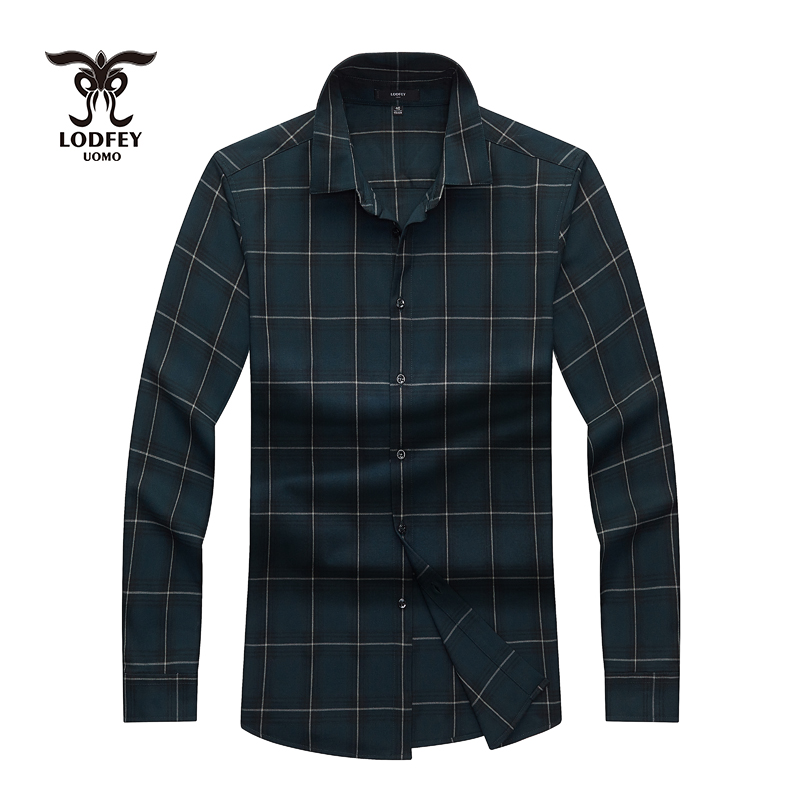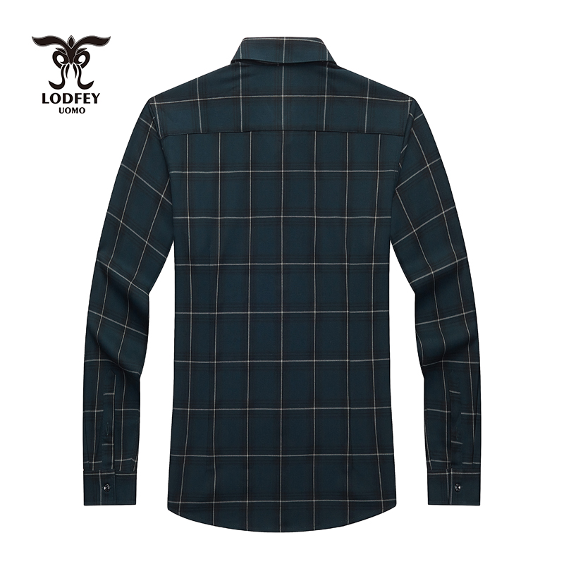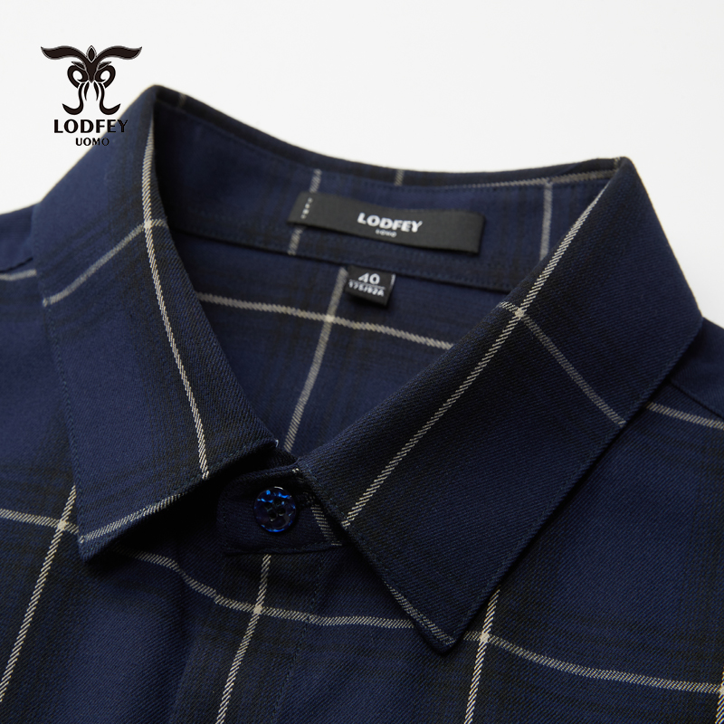 龙达飞官方正品青年男士经典百搭休闲尖领格子长袖衬衫F17309Q1