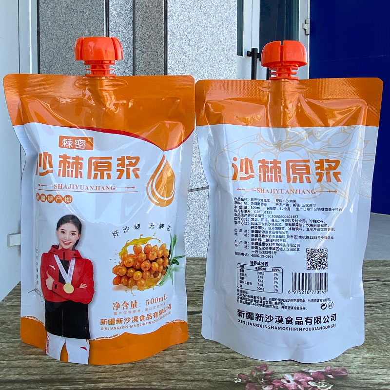 【买就送】新疆特产棘密沙棘原汁原浆袋装500ml鲜果鲜榨果汁饮料