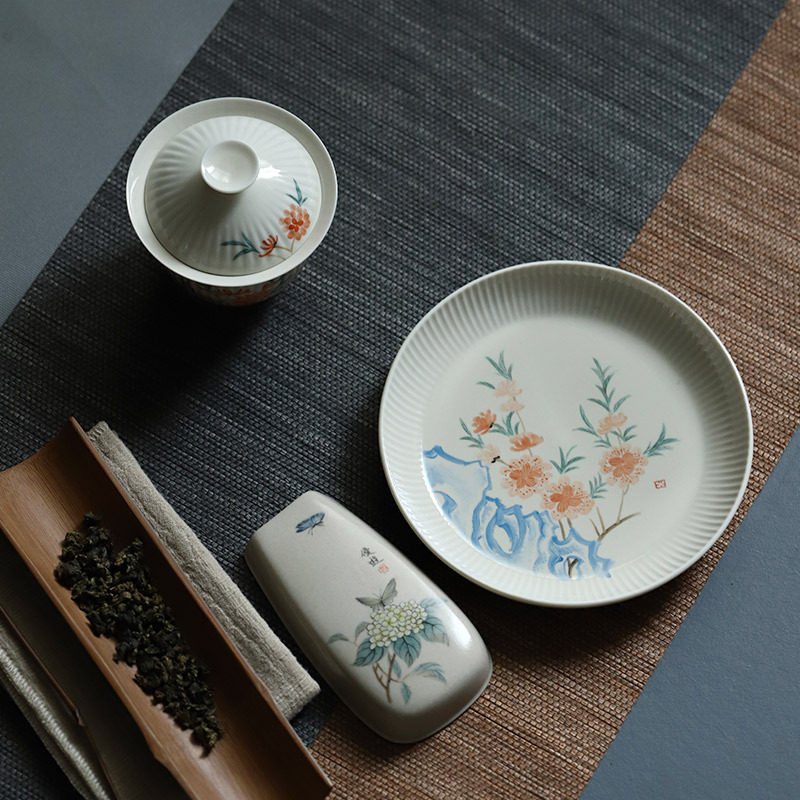 景德镇手绘陶瓷壶承茶点盘