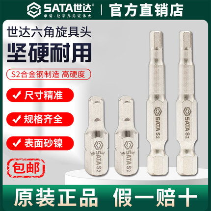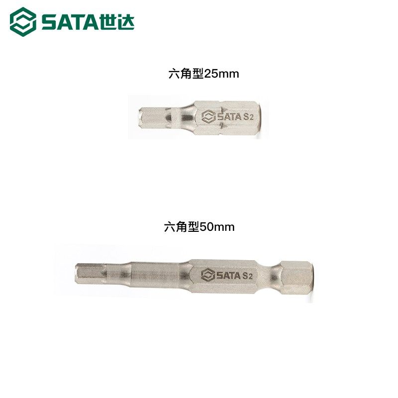Sata世达6.3mm内六角批头工具替换头25mm/50mm长起子螺丝刀旋具头