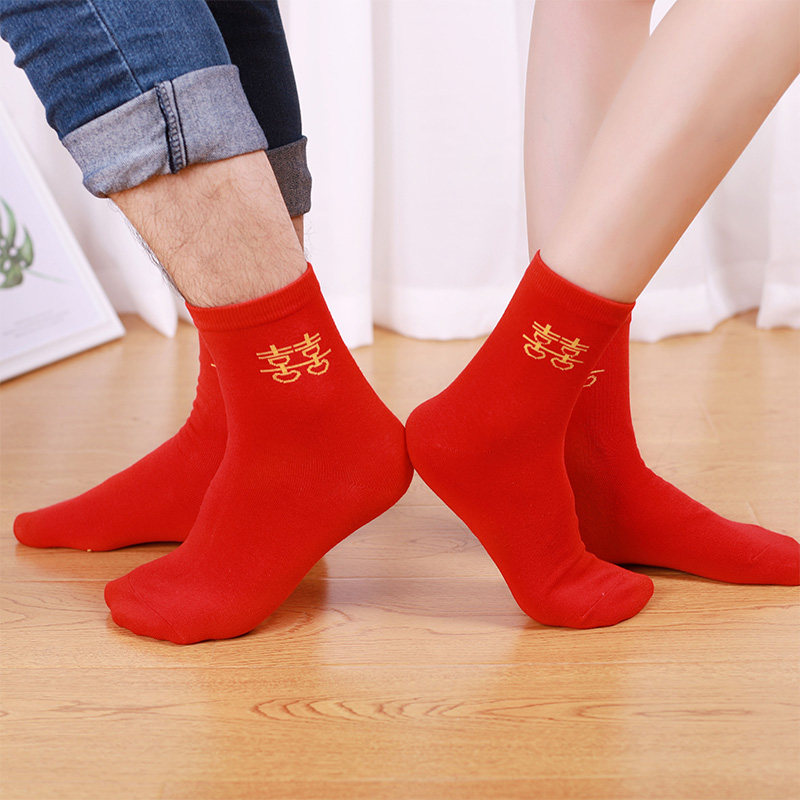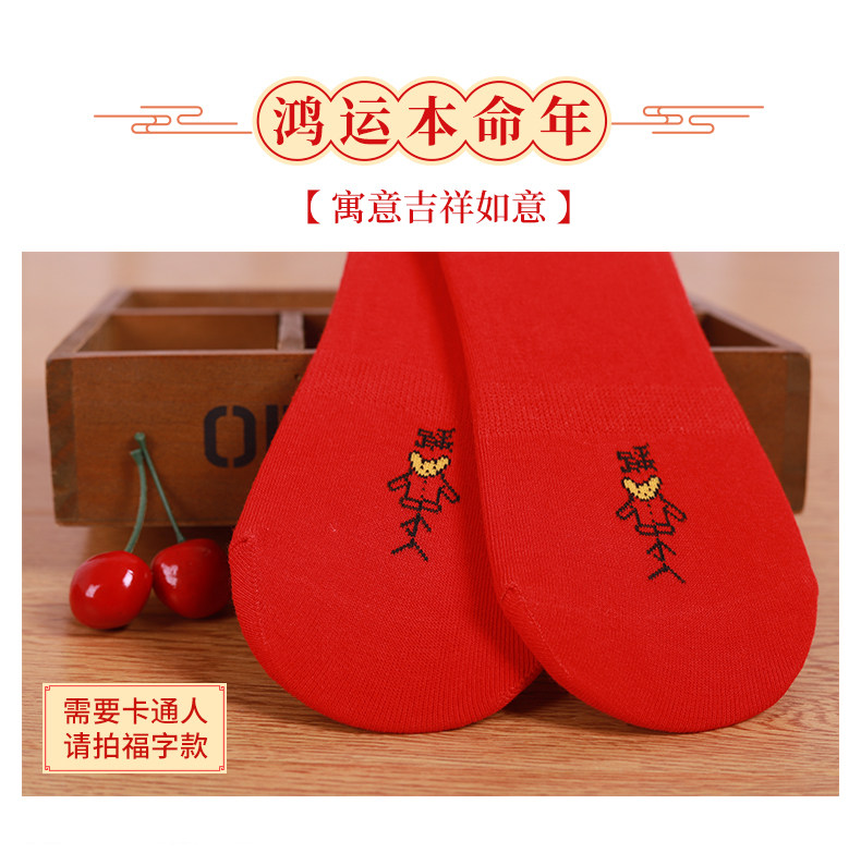 2026马年小人本命年袜子女纯棉情侣船袜隐形袜男士中筒大红色短袜