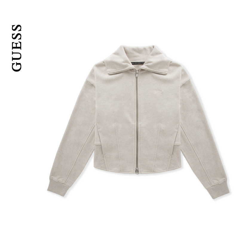 GUESS女士休闲百搭立体裁剪翻领开衫卫衣-YO3K3496